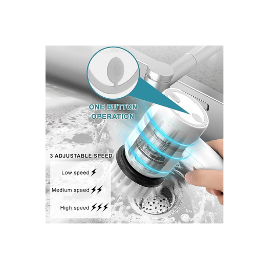 Multi-Functional Electric Cleaning Brush 5 in 1 Magic Power Scrubber Household Cleaning Tools Spin Scrubber with Buffer Polisher, for Bathroom, Shower, Tub, Kitchen Floor
