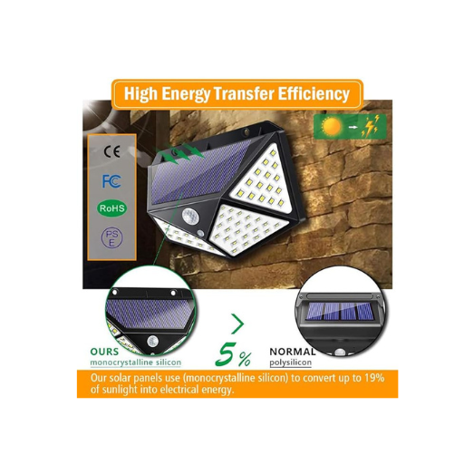 Solar Rechargeable Brick Wall Light Outdoor 100 LEDs Motion Sensor Light with Solar Panel with IP65 Protection, Waterproof with Wide Angle Lighting Pack of 1