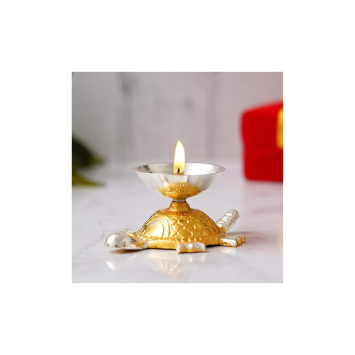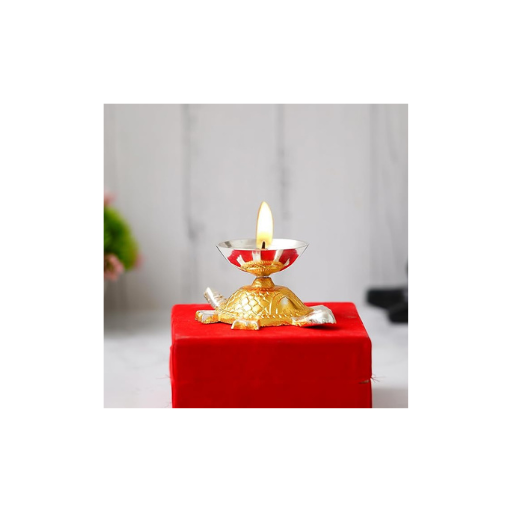 Handicraft Decorative Gold-Silver Tortoise Diya with Red Velvet Gift Box | Brass Akhand Deepam for Pooja, Temple, Diwali, Vastu Good Luck | Wedding Favour & Return Gift