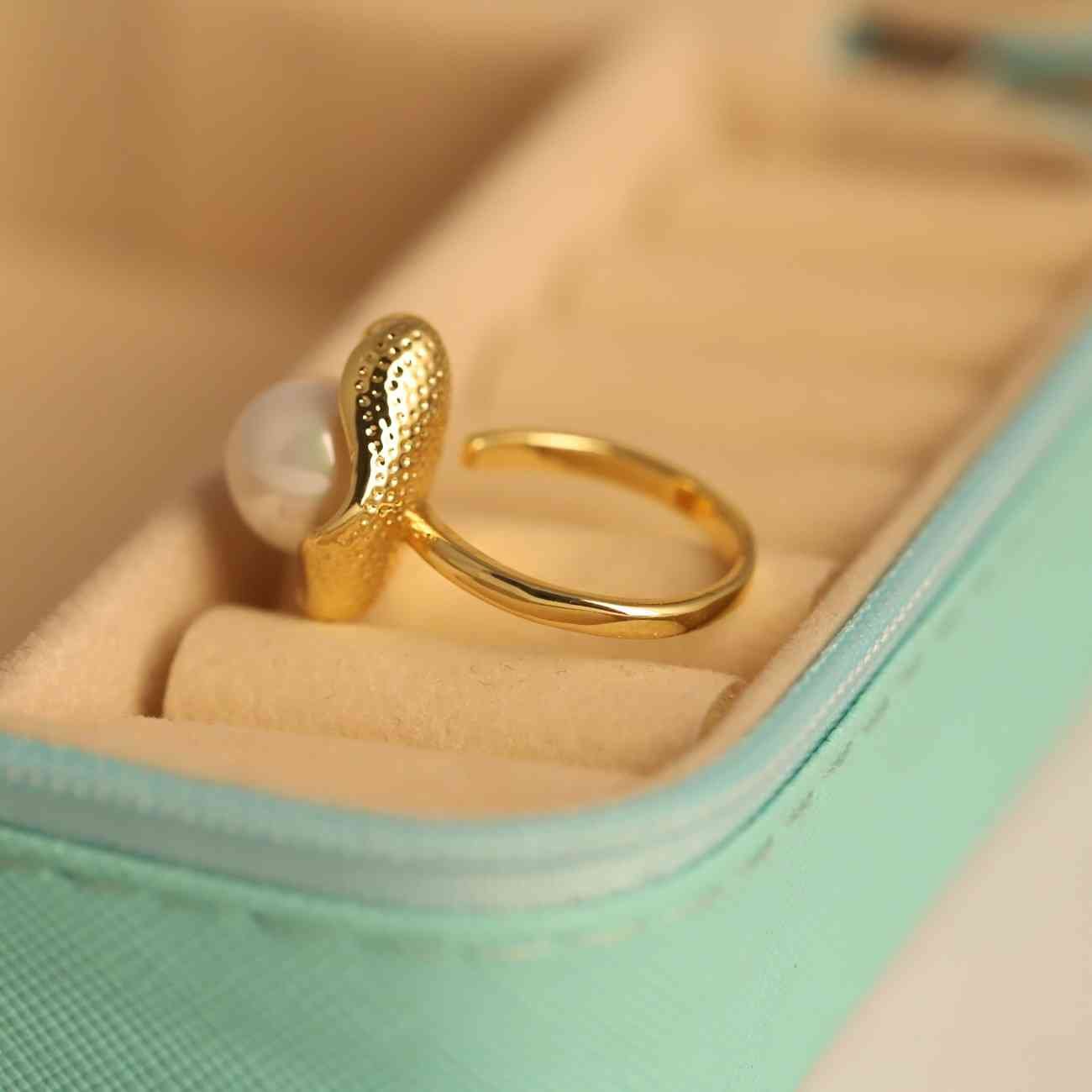 A thoughtful gift for anniversaries, birthdays, or special milestones, the Gold-Plated Floral Pearl Ring embodies both beauty and meaning, making it a cherished keepsake for years to come.