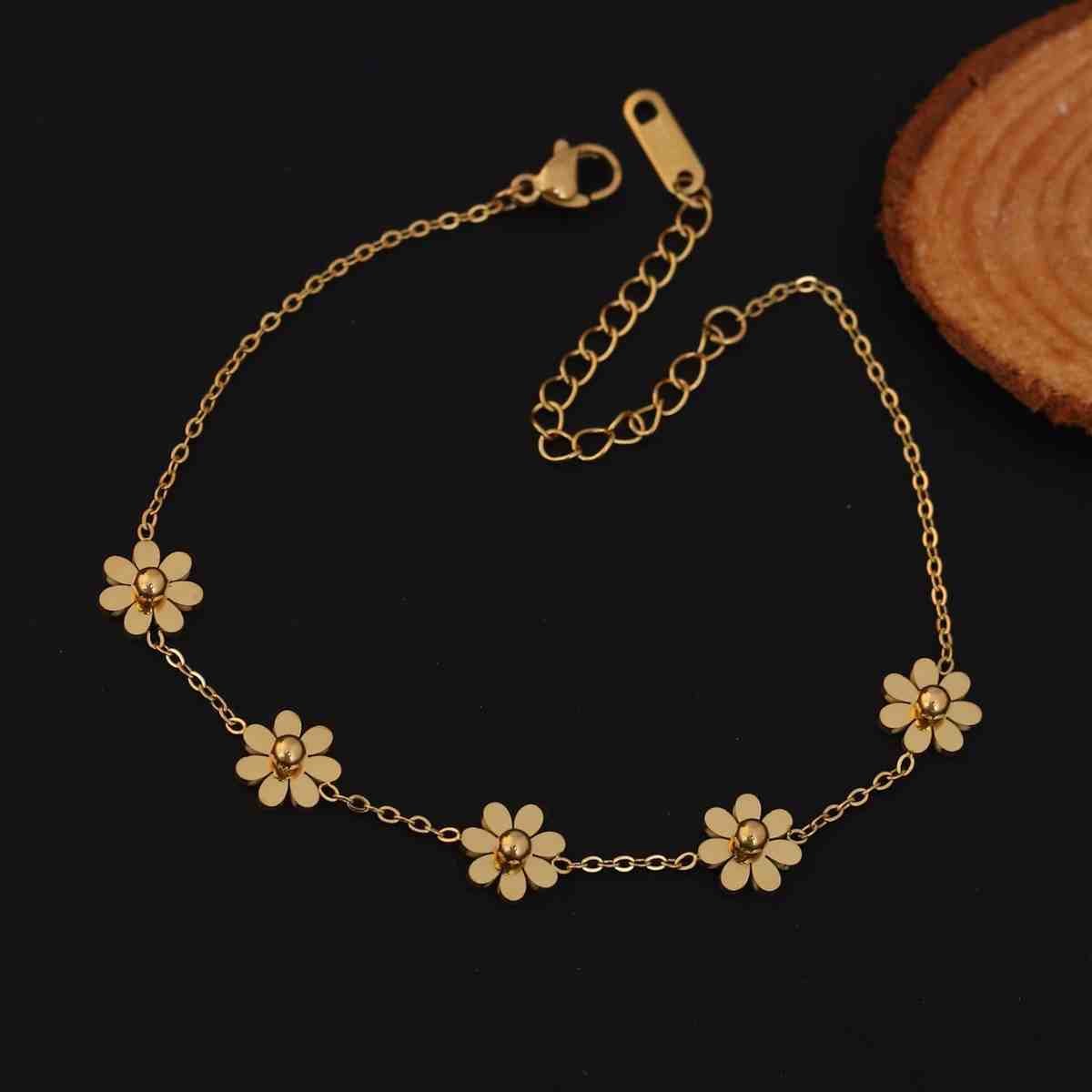 Elevate your style with this elegant 22K gold plated flower chain bracelet, a perfect blend of durability, beauty, and timeless charm.