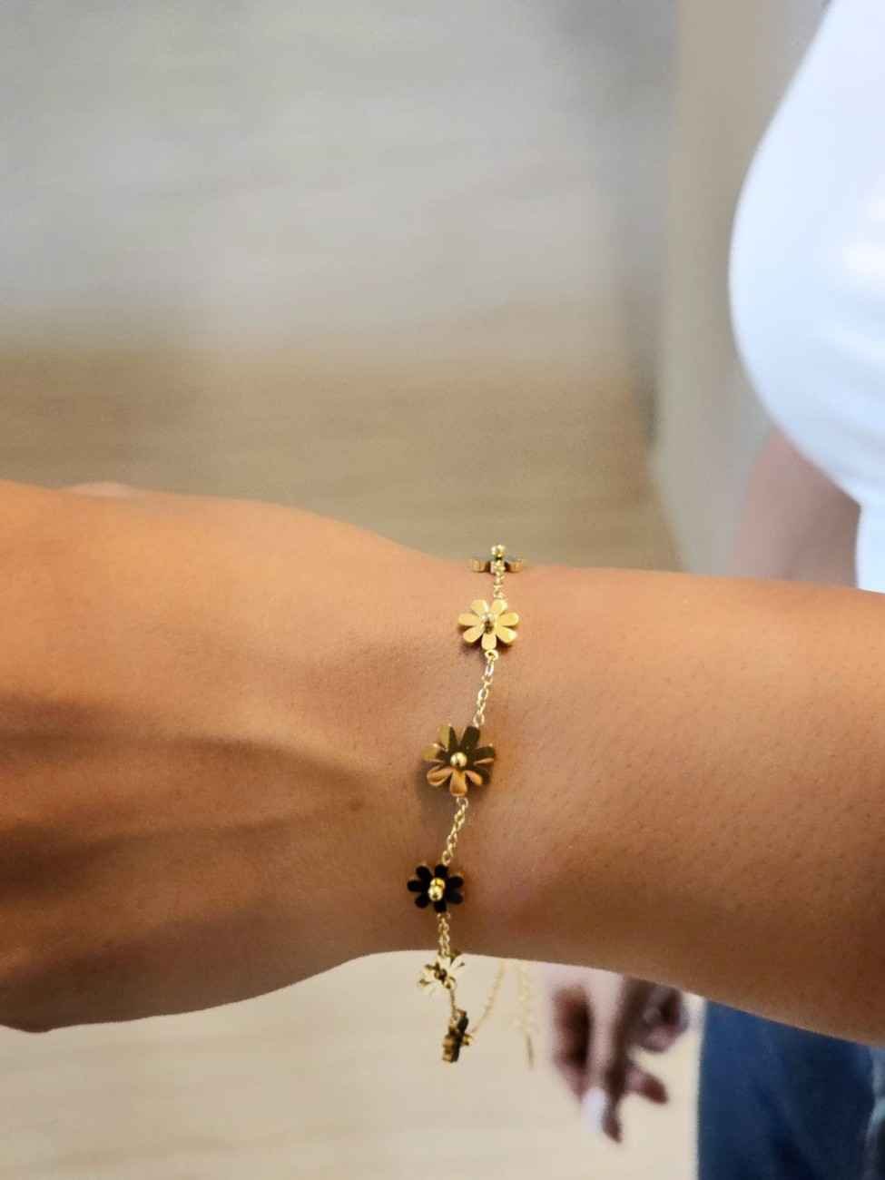 A modern yet timeless piece, this flower chain bracelet is the perfect accessory for women who love jewelry that is stylish, durable, and effortlessly chic