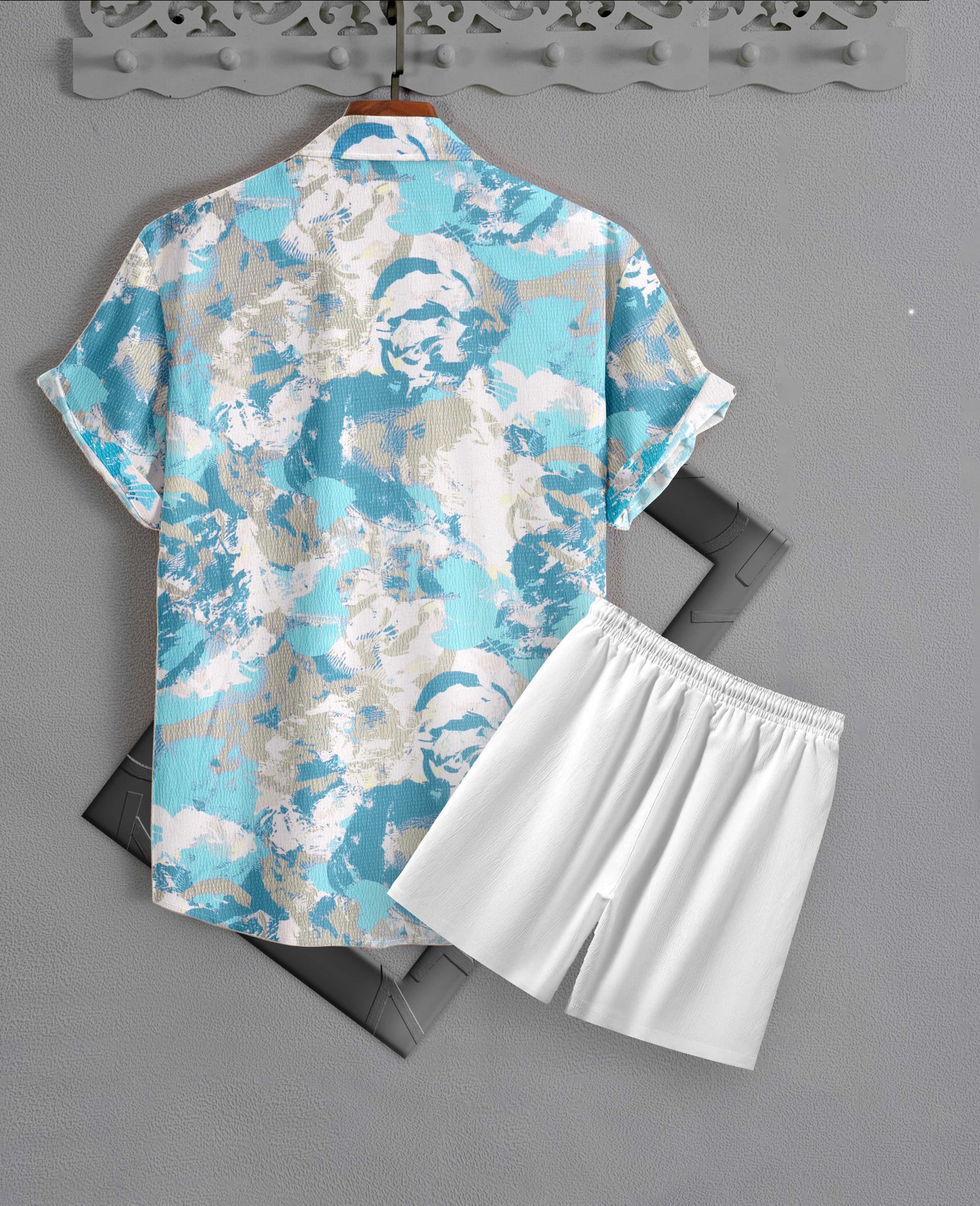 Upgrade your loungewear collection with this Men’s Blue Abstract Print Night Suit. Designed with a unique splash-style abstract pattern, the half-sleeve button-down shirt pairs perfectly with the elastic-waist shorts for a relaxed fit. Crafted from breathable and soft fabric, this set is ideal for summer nights, weekend lounging, or casual indoor wear. Its trendy design and easy fit make it a versatile choice for men who want both comfort and style at home.