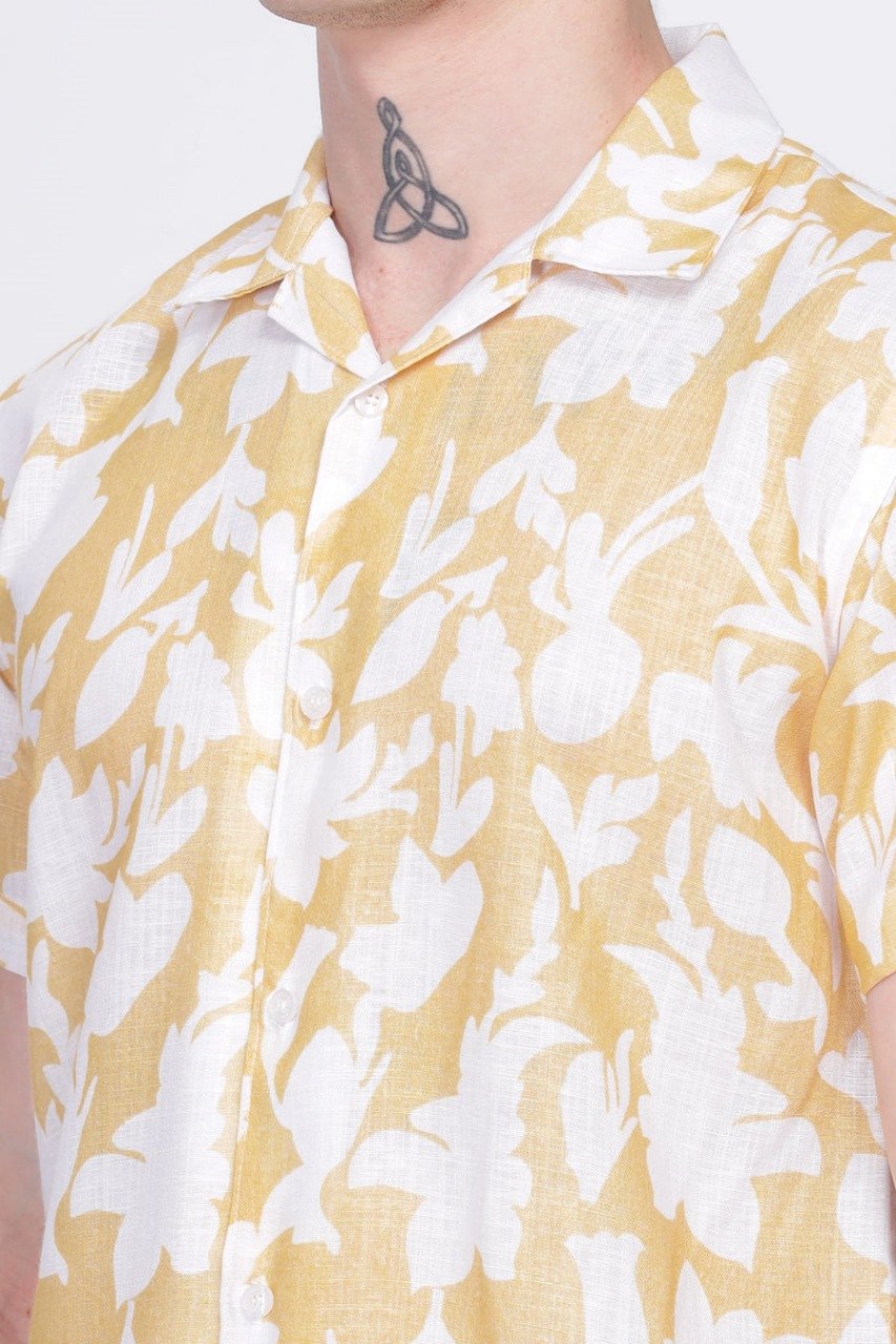 Elevate your casual wardrobe with this Men’s Yellow & White Floral Shirt, designed for comfort and effortless style.