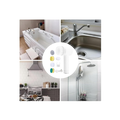 Multi-Functional Electric Cleaning Brush 5 in 1 Magic Power Scrubber Household Cleaning Tools Spin Scrubber with Buffer Polisher, for Bathroom, Shower, Tub, Kitchen Floor