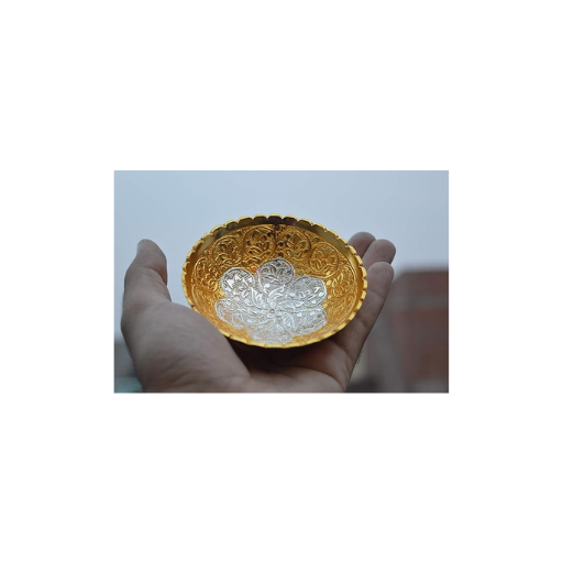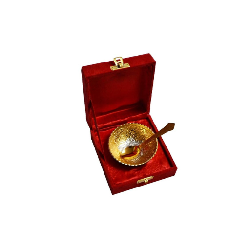 Premium Silver and Gold Plated Bowl Set (Bowl with Spoon) in Red Velvet Box 3.5 Inch Diameter