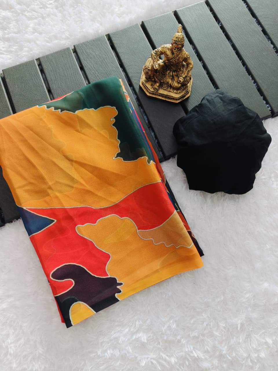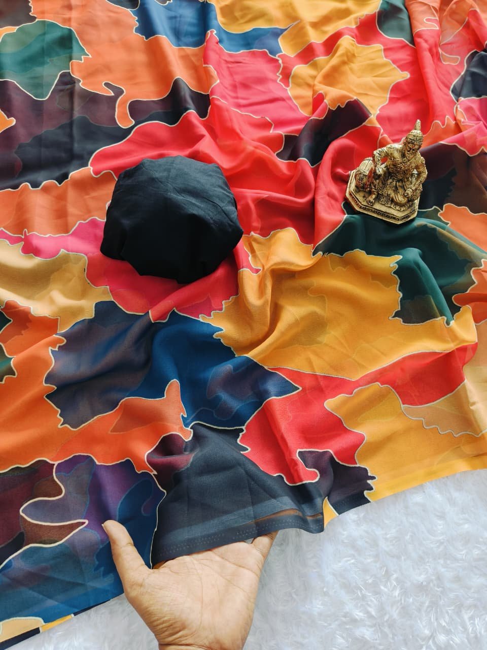 Fabric details - Soft & smooth marshmellow georgette with mosaic digital print comes with a beautiful black mul cotton Blouse